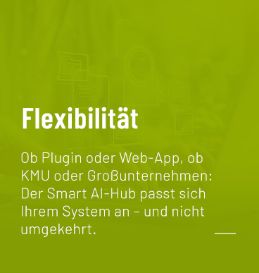 Der Smart AI-Hub begleitet Sie auf diesem Weg: zunächst als Brücke, um Ihre Daten miteinander zu vernetzen, später als intelligente Plattform für Automatisierung, Effizienz und nachhaltigen Erfolg.